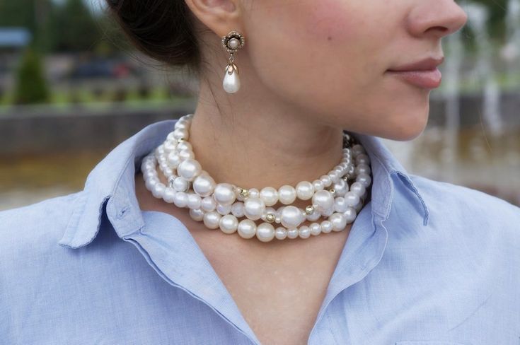 Крупный жемчуг делает образ более статусным и смелым. Весной и летом он особенно эффектен на загорелой коже и в сочетании с открытыми элементами одежды.