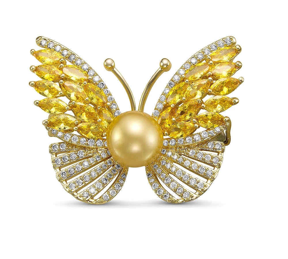 Брошь-кулон "Бабочка" с Австралийской морской жемчужиной 10-10,5 мм, (7187)