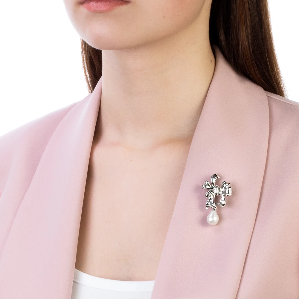 Эксклюзивная брошь выполнена из серебра 925 пробы и украшена белой жемчужиной Южных морей (Австралия). Размер броши - 3 х 5 см.
