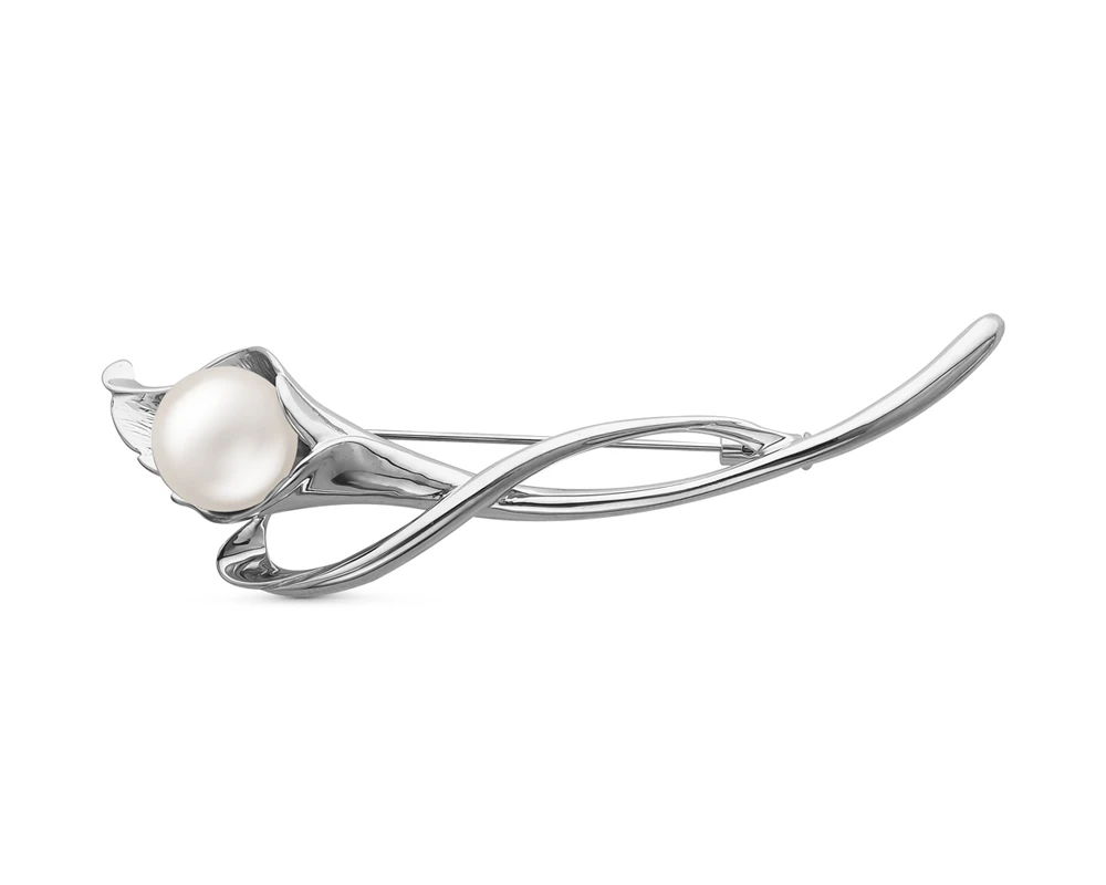 Эксклюзивная брошь выполнена из серебра 925 пробы и украшена морской белой жемчужиной Южных морей (Австралия).