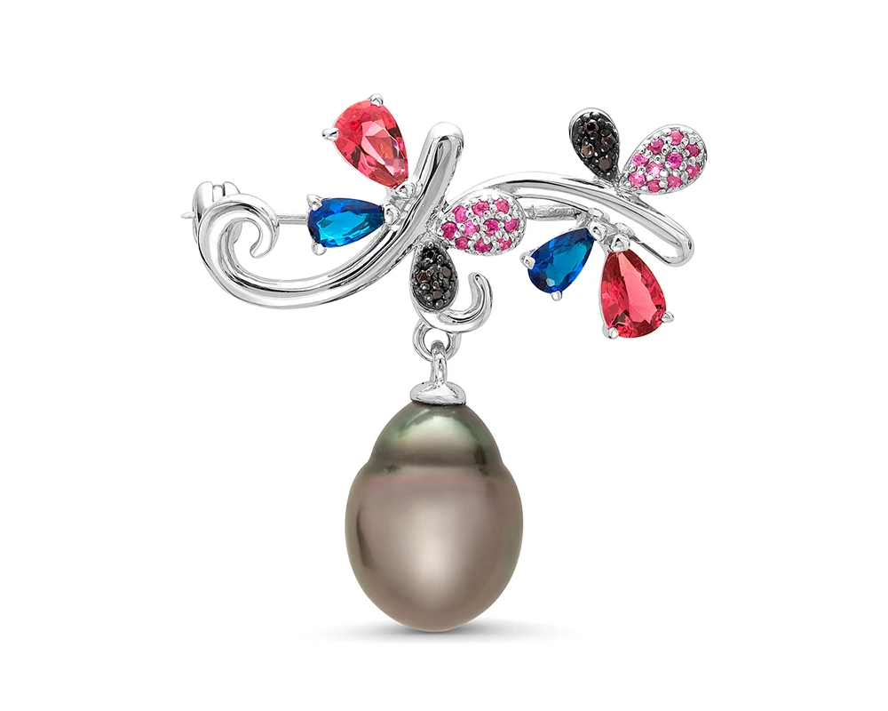 Эксклюзивная брошь выполнена из серебра 925 пробы и украшена черной морской Таитянской жемчужиной. Размер броши — 3,2 см.