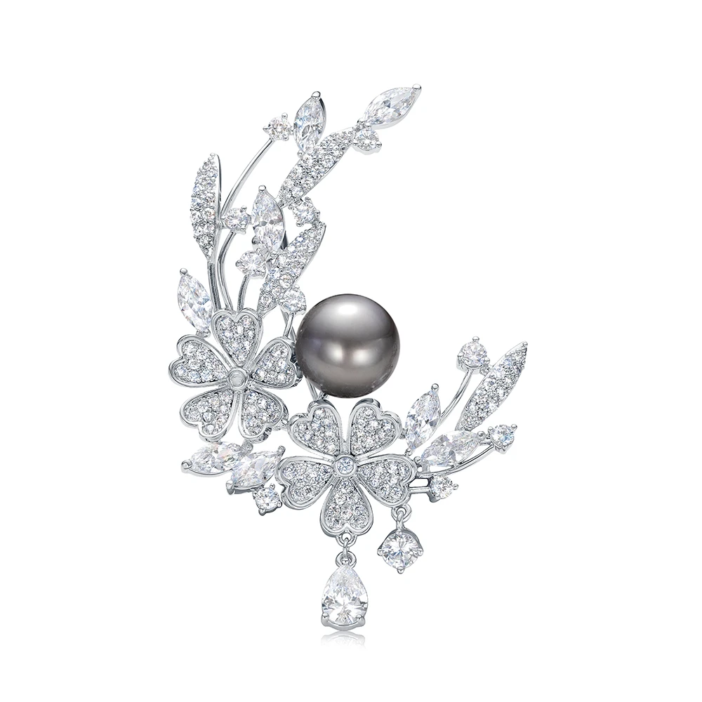 Эксклюзивная брошь выполнена из ювелирного сплава и украшена морской черной Таитянской жемчужиной. Размер броши - 5 см.