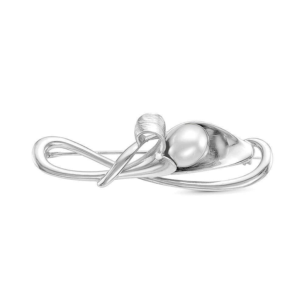 Брошь из серебра с белой пресноводной жемчужиной 11-12 мм, (6284)