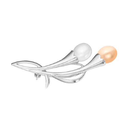 Брошь из серебра с розовой и белой речными жемчужинами 7,5-8 мм, (4431)