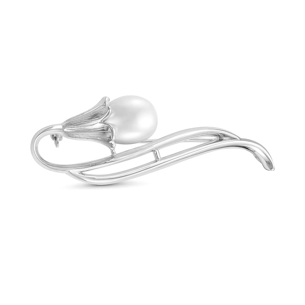 Брошь из серебра с белой речной жемчужиной 12-16 мм, (5251)