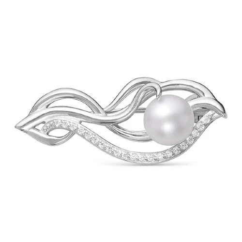 Брошь из серебра с белой речной жемчужиной 8,5-9 мм, (4408)