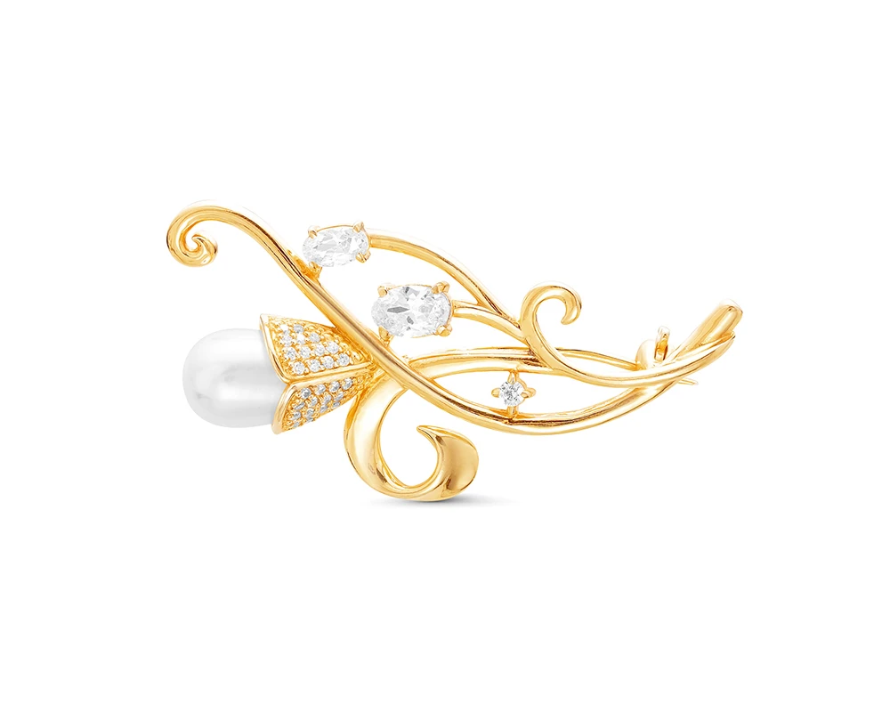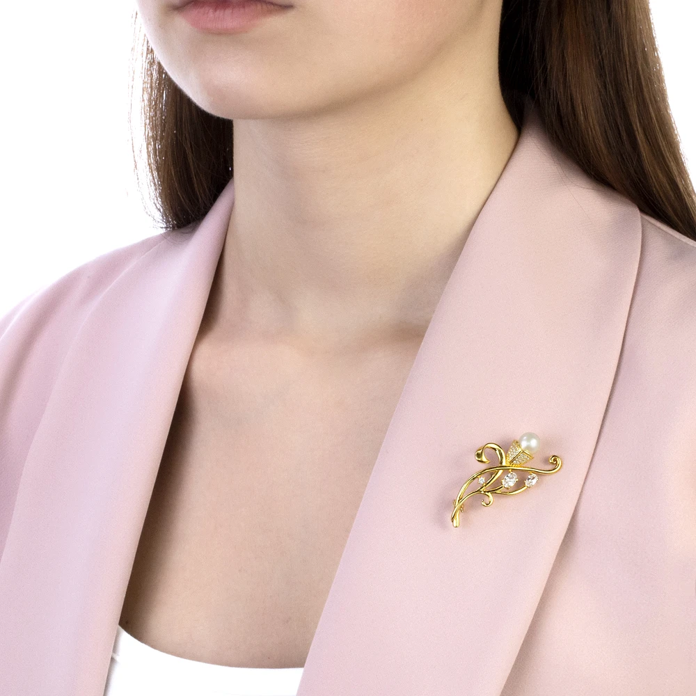 Брошь выполнена из серебра 925 пробы с покрытием "желтое золото". Размер броши — 4,5 см.