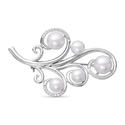 Брошь из серебра с белыми речными жемчужинами 4,5-7,5 мм, (4426)