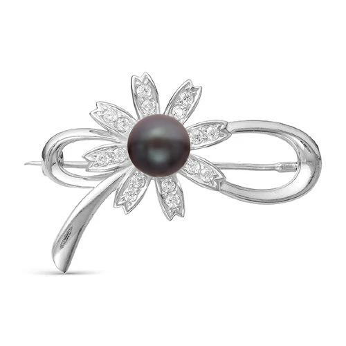 Брошь из серебра с черной речной жемчужиной 10,5-11 мм, (4422)