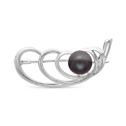 Брошь из серебра с черной речной жемчужиной 8,5-9 мм, (4410)