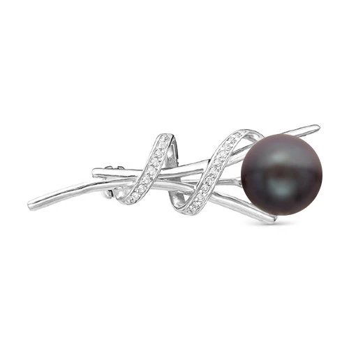 Брошь из серебра с черной речной жемчужиной 8,5-9 мм, (4420)