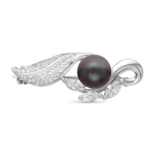 Брошь из серебра с черной речной жемчужиной 8,5-9 мм, (4424)