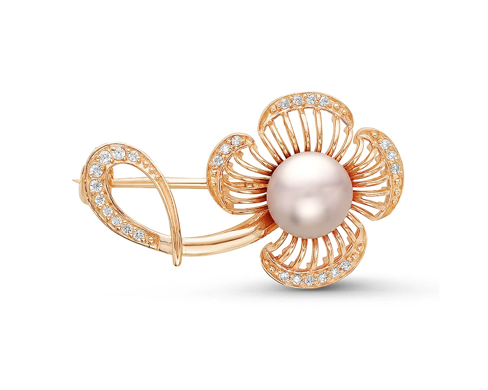 Брошь "Цветок" из серебра с розовой речной жемчужиной 7,5-8 мм, (3448)