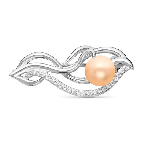 Брошь из серебра с розовой речной жемчужиной 8,5-9 мм, (4407)