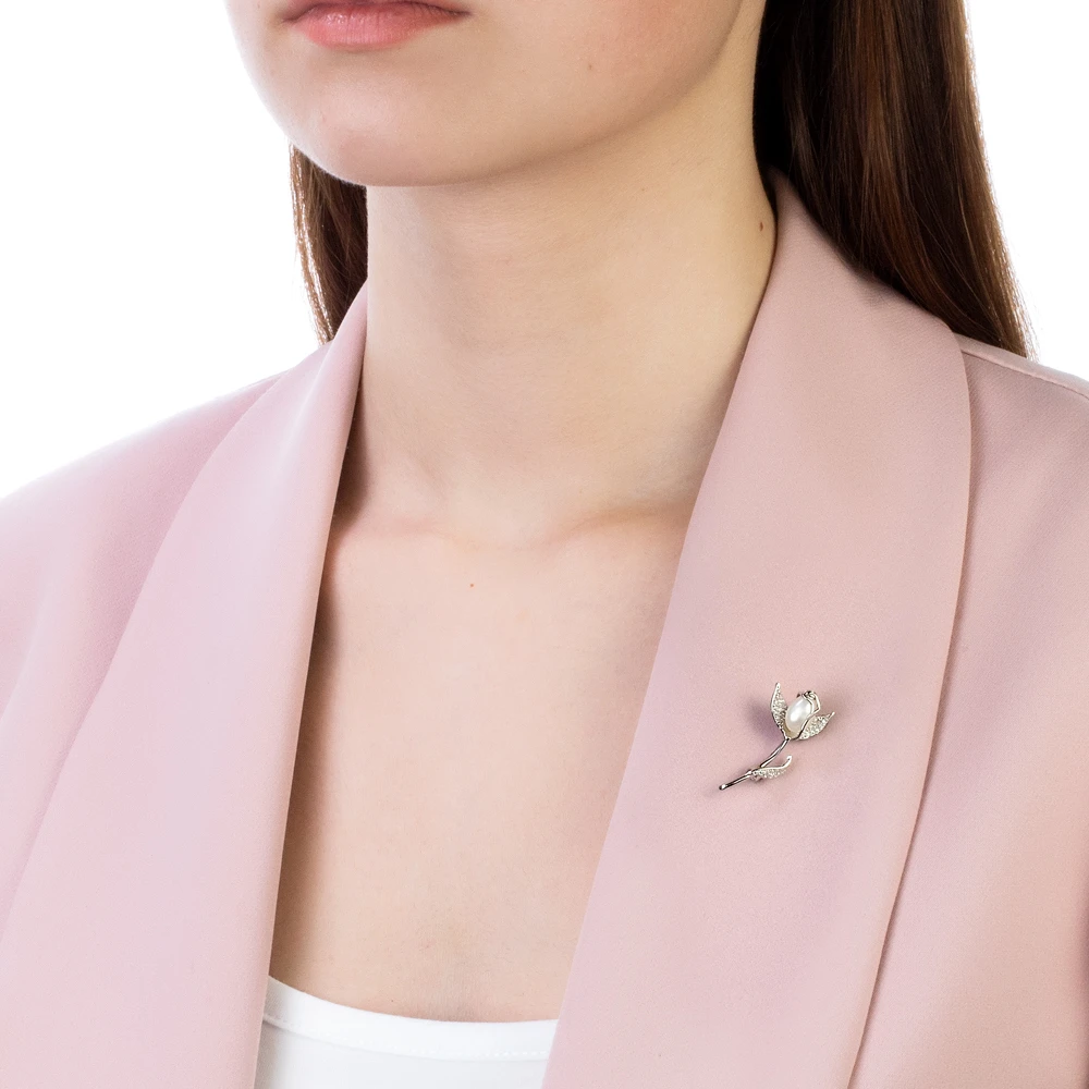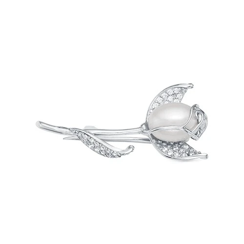 Брошь выполнена из серебра 925 пробы и украшена пресноводной белой жемчужиной. Размер броши - 3,5 см.