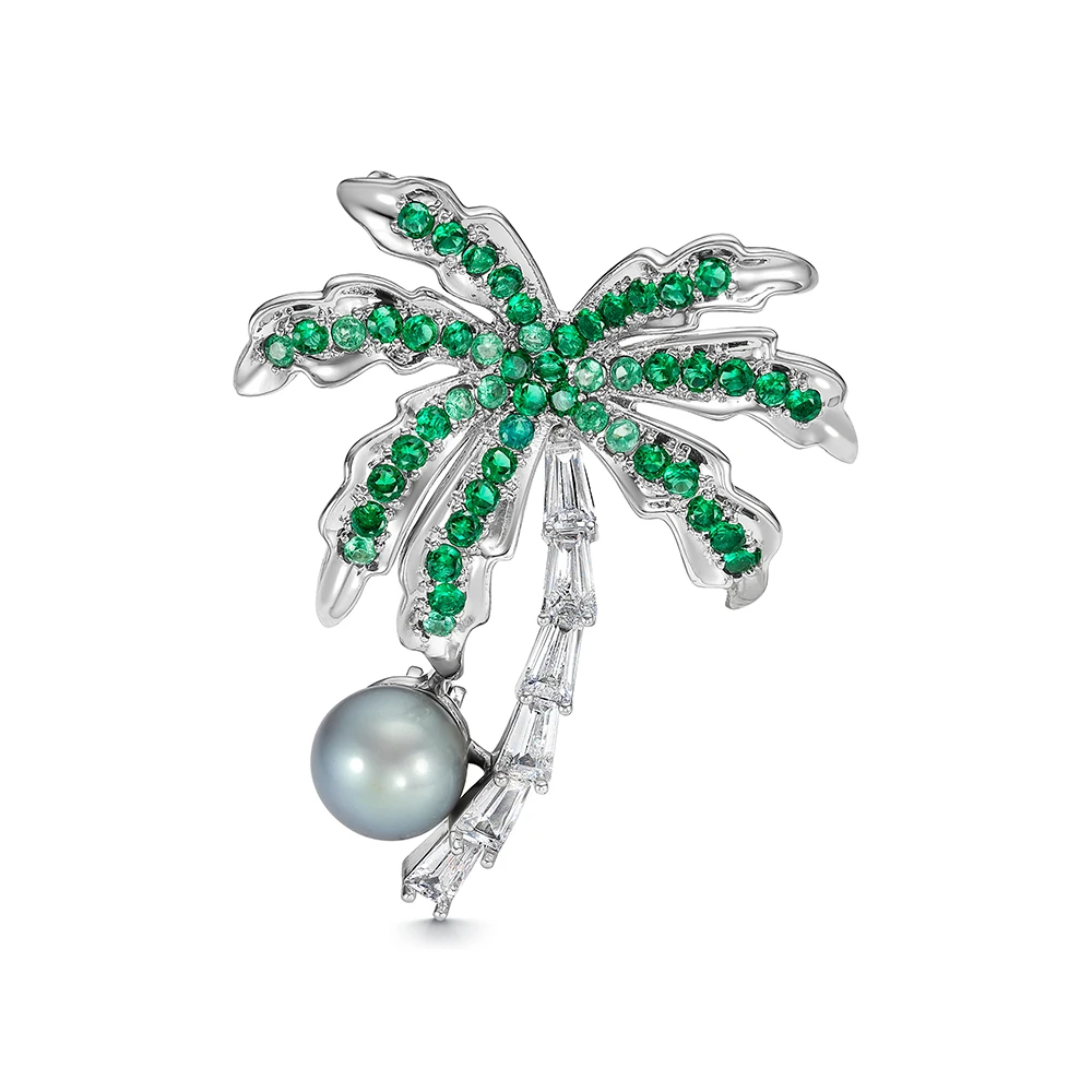 Брошь выполнена из высококачественного ювелирного сплава и украшена пресноводной жемчужиной. Размер броши — 5 см.