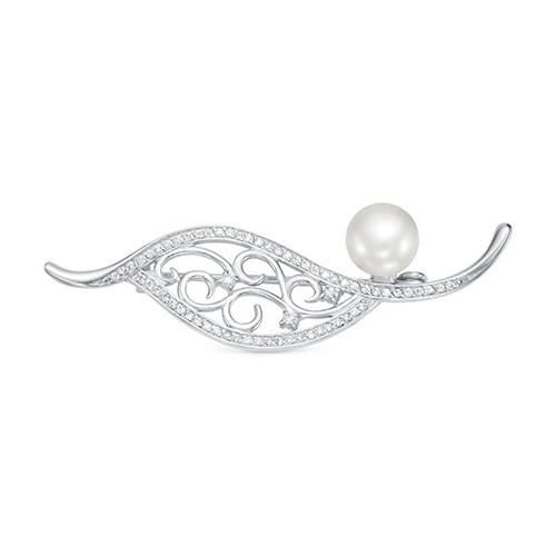 Брошь выполнена из серебра 925 пробы и украшена пресноводной белой жемчужиной и фианитами. Размер броши - 5,5 мм.
