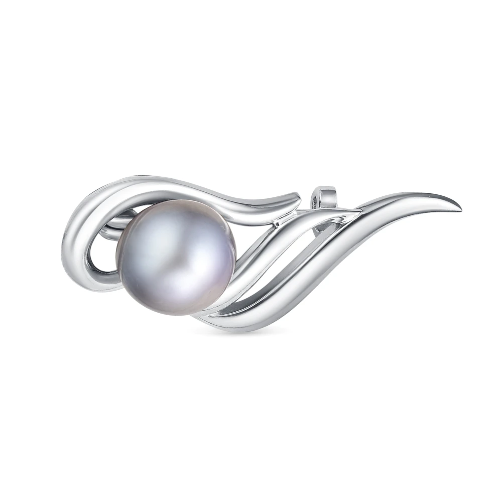 Брошь из серебра с серебристой речной жемчужиной 10-10,5 мм, (2647)