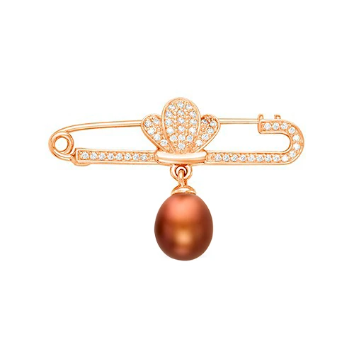 Брошь из серебра с шоколадной жемчужиной "капля" 8,5-9 мм, (2650)
