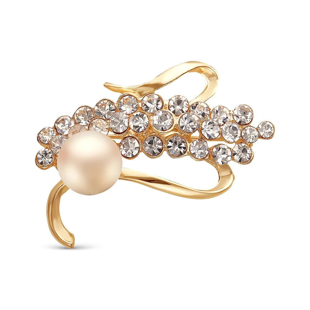 Брошь выполнена из высококачественного ювелирного сплава и украшена пресноводной розовой жемчужиной и фианитами.