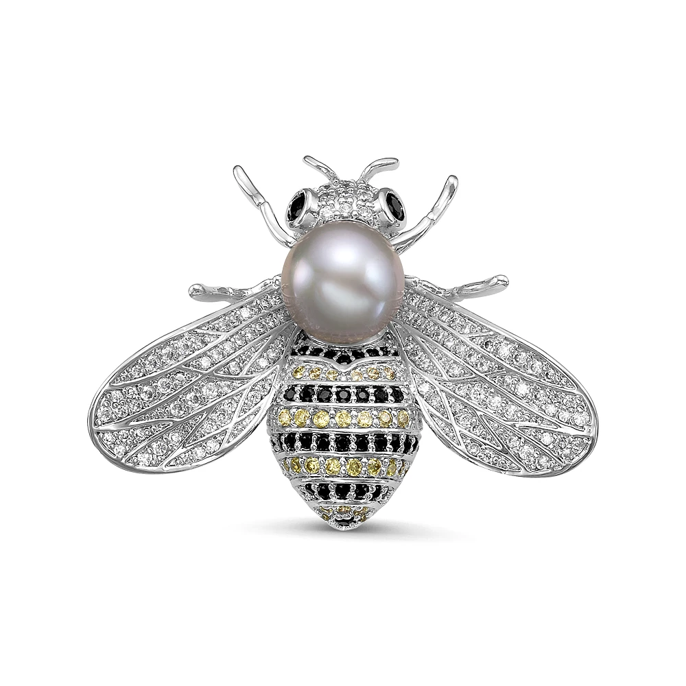 Брошь-кулон из сплава с серебристой речной жемчужиной 8,5-9 мм, (7200)