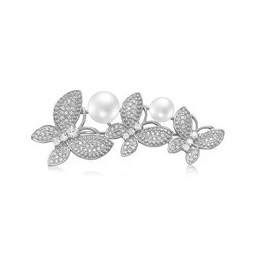 Брошь "Бабочки" из серебра с белыми речными жемчужинами 7-8 мм, (5774)