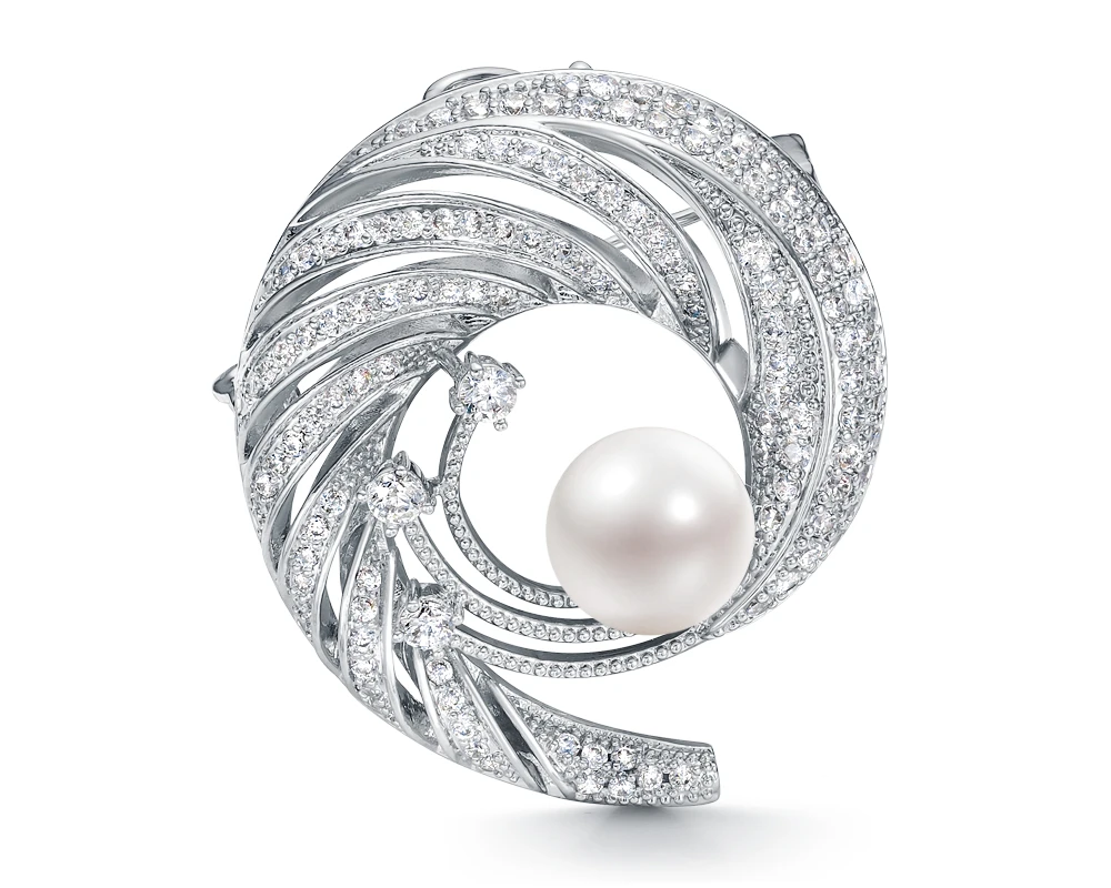 Брошь-кулон из сплава с белой речной жемчужиной 8,5-9 мм, (5759)