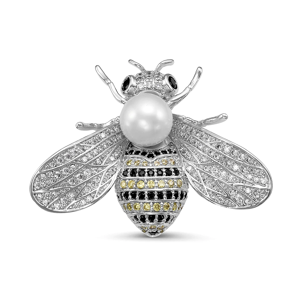 Брошь-кулон из сплава с белой речной жемчужиной 8,5-9 мм, (154)