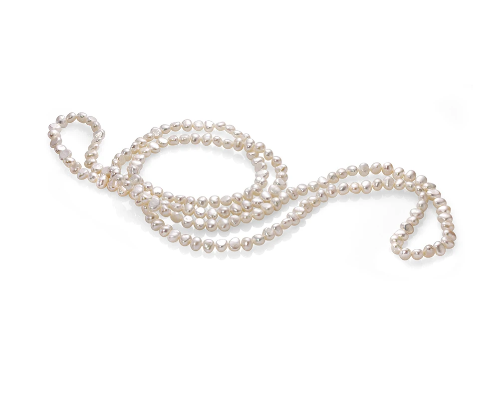 Длинные бусы собраны из отборных жемчужин пресной воды. Модель очень актуальна в этом сезоне, прекрасно подходит как к строгому вечернему платью, так и к повседневным джинсам. Бусы можно носить различными способами: в один ряд до талии, завязать узлом на груди, обмотать вокруг шеи в несколько рядов.