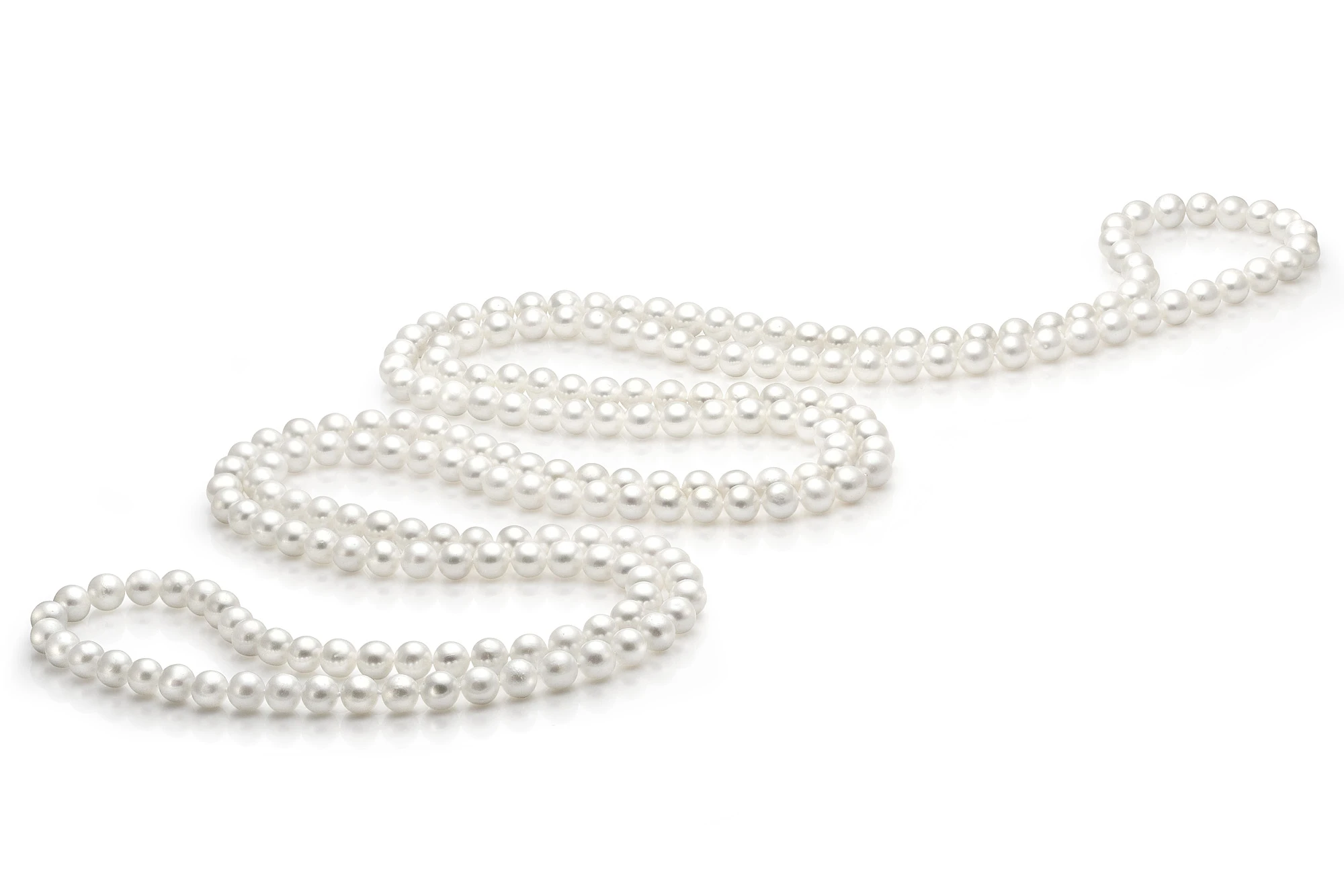 Длинные бусы из белого круглого речного жемчуга класса АА+. Жемчужины 7-7,5 мм, (1022(11400))