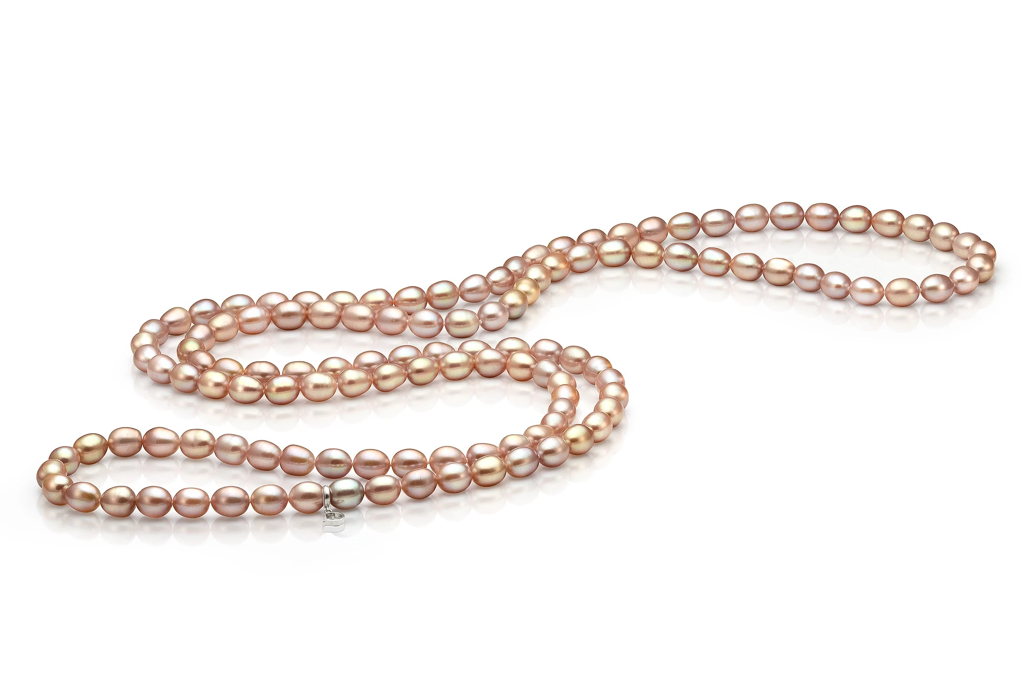 Длинные бусы из розового каплевидного речного жемчуга. Жемчужины 7,5-8 мм, (1034(15000))