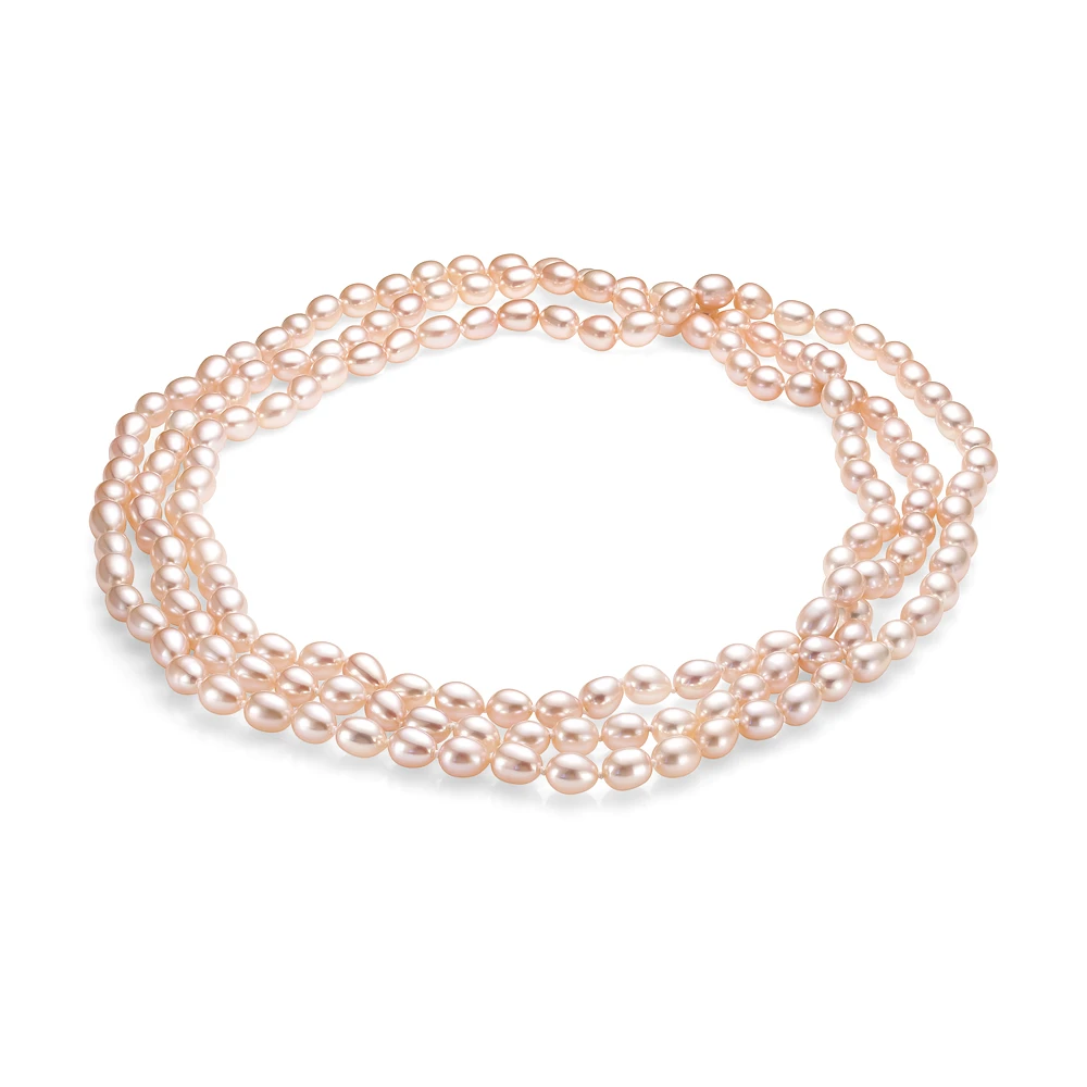 Длинные бусы собраны из отборных жемчужин пресной воды в форме риса. Бусы можно носить различными способами: в один ряд до талии, завязать узлом на груди, обмотать вокруг шеи в несколько рядов.