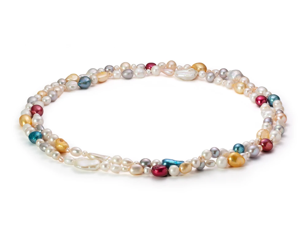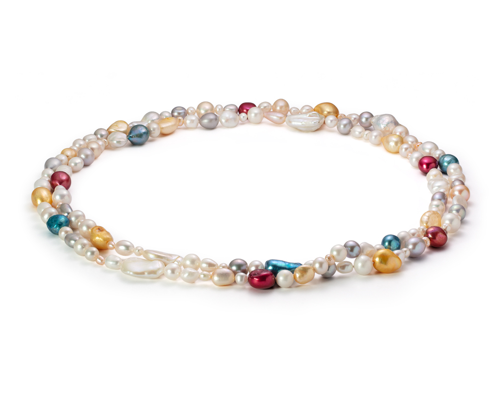 Длинные бусы "микс" из речного жемчуга класса АА+. Жемчужины 4-19 мм, (6253)