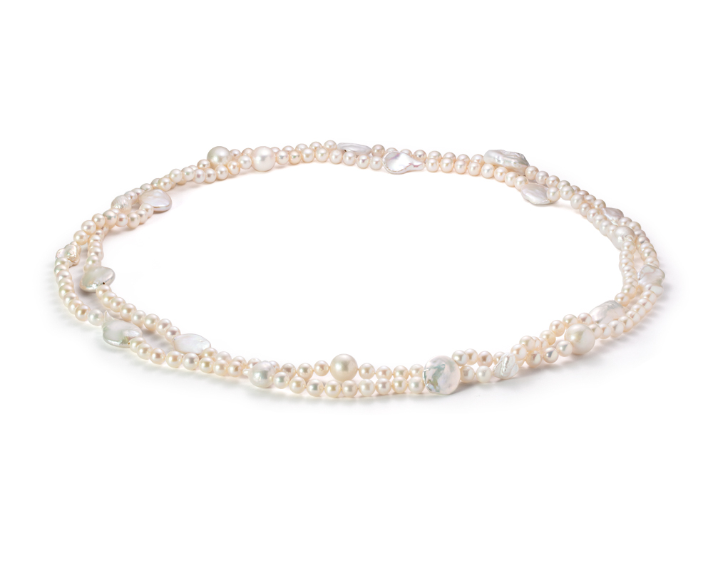 Длинные бусы из белого речного жемчуга класса АА+. Жемчужины 7-18 мм, (2181)