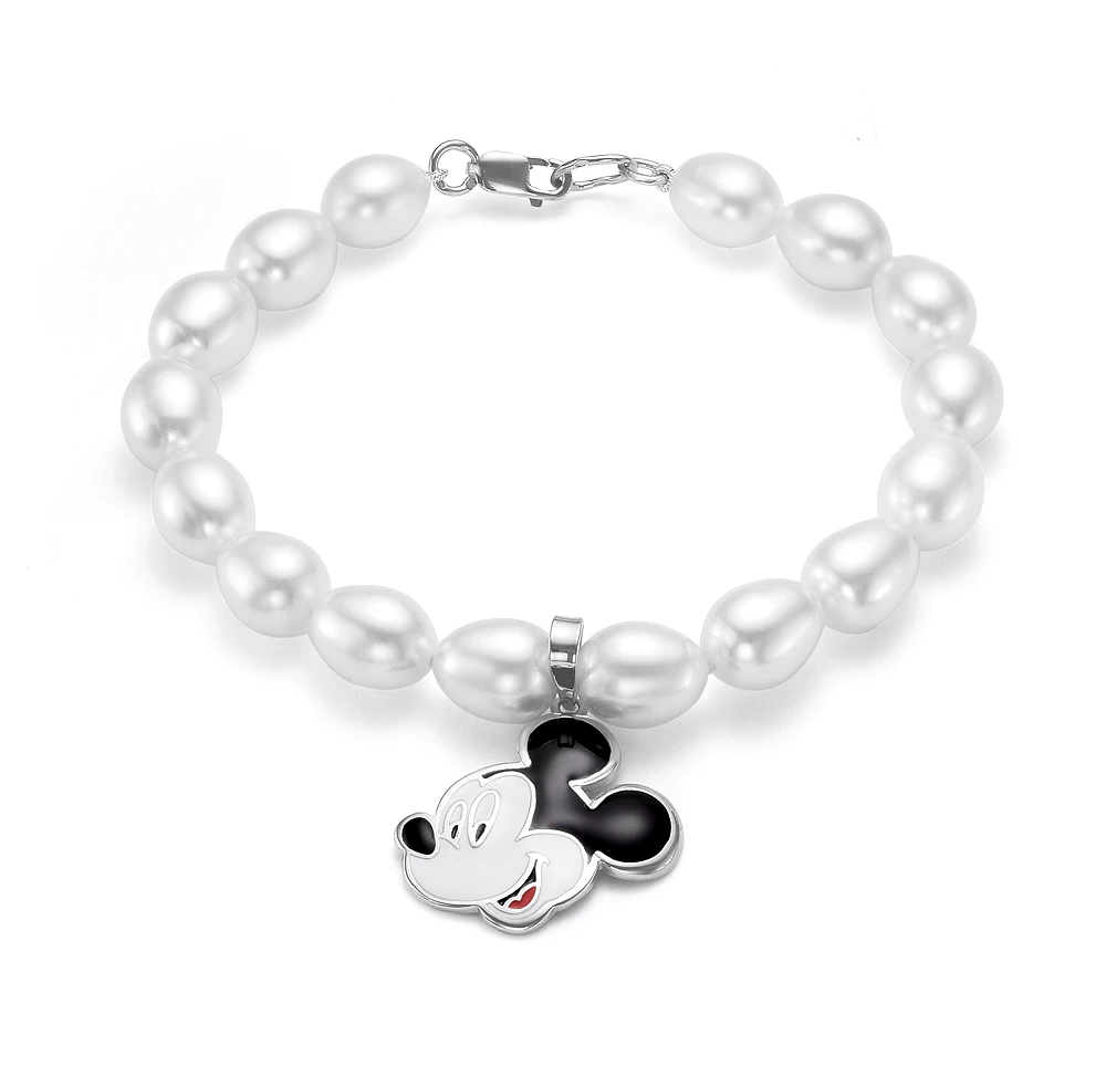 Детский браслет с подвеской "Микки Маус". Жемчуг "Рис" размером 7,5-8 мм, (4372)