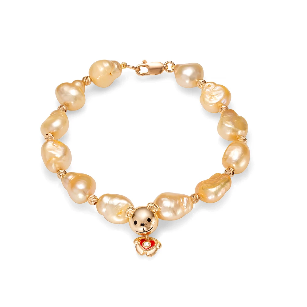 Детский браслет. Золотистый жемчуг "Барокко" размером 10-11 мм, (4171)