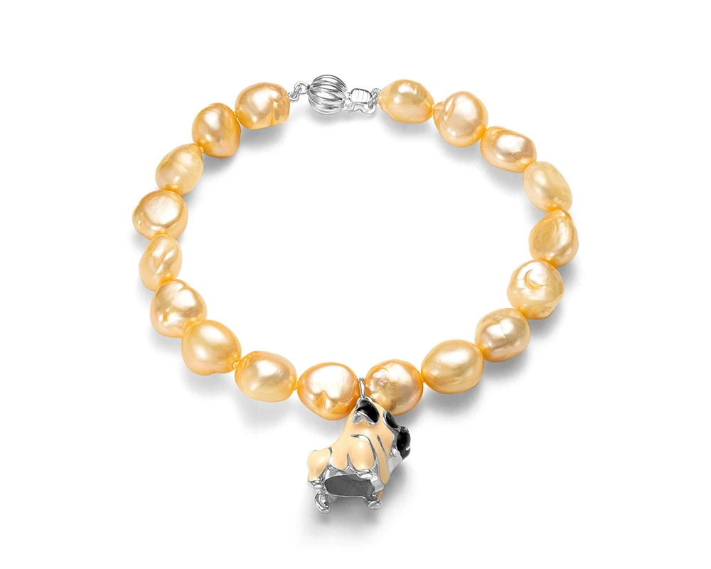 Стильный детский браслет из жемчуга барокко украшен подвеской из серебра. Длина браслета — 18—19 см. Замок серебряный.