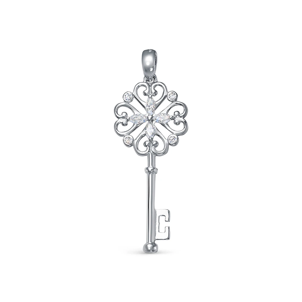 Кулон "Ключик" из серебра 925 пробы с фианитами, (7623)