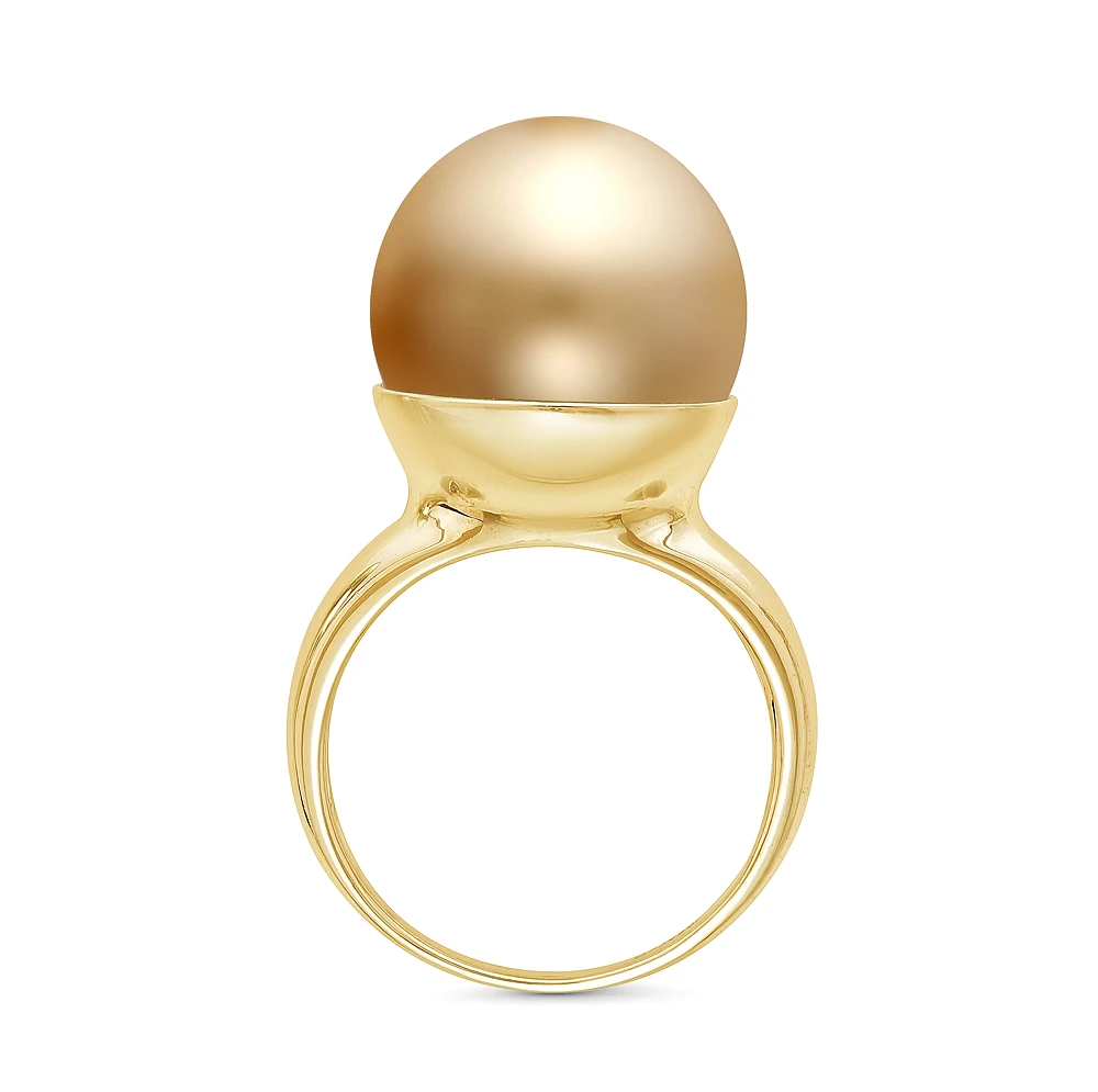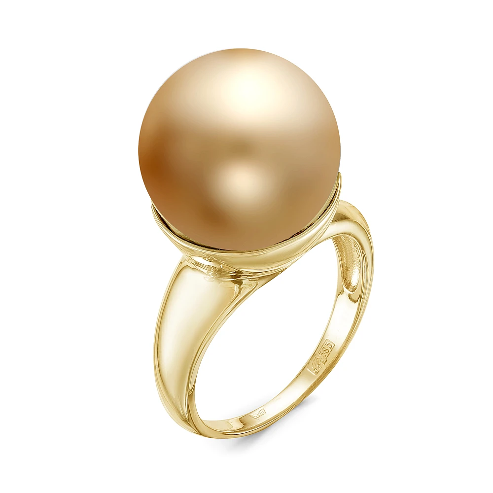 Кольцо из серебра 925 пробы с покрытием "желтое золото" украшено морской золотистой Австралийской жемчужиной.