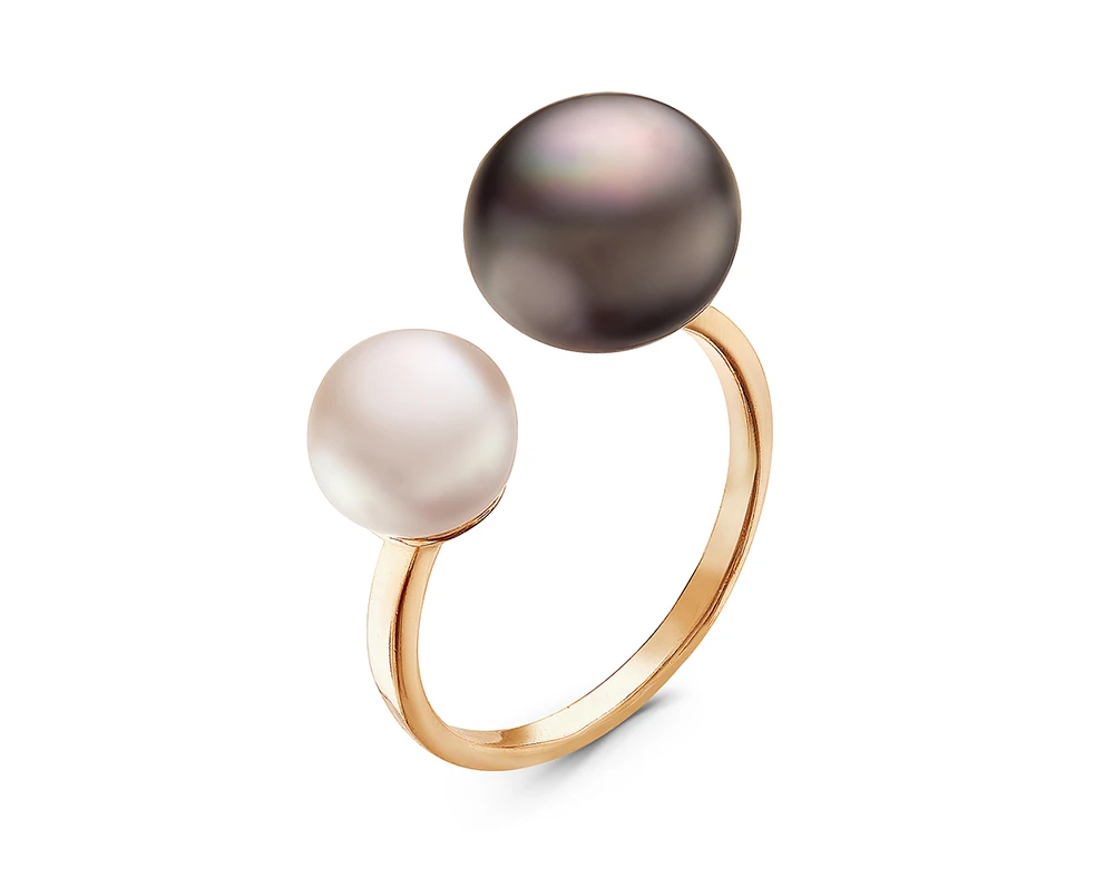 Кольцо "Диор" из серебра с белой и черной речными жемчужинами 7-10 мм, (3440)