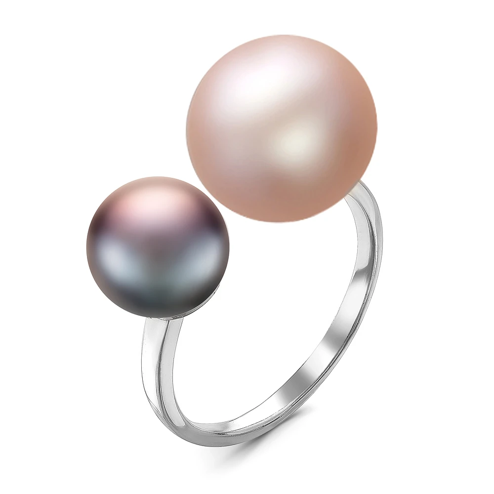 Кольцо "Диор" из серебра с розовой и черной речными жемчужинами 8,5-11 мм, (7156)