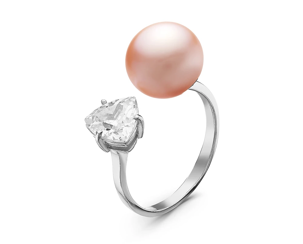 Кольцо "Диор" из серебра с розовой речной жемчужиной 9,5-10 мм, (3464)