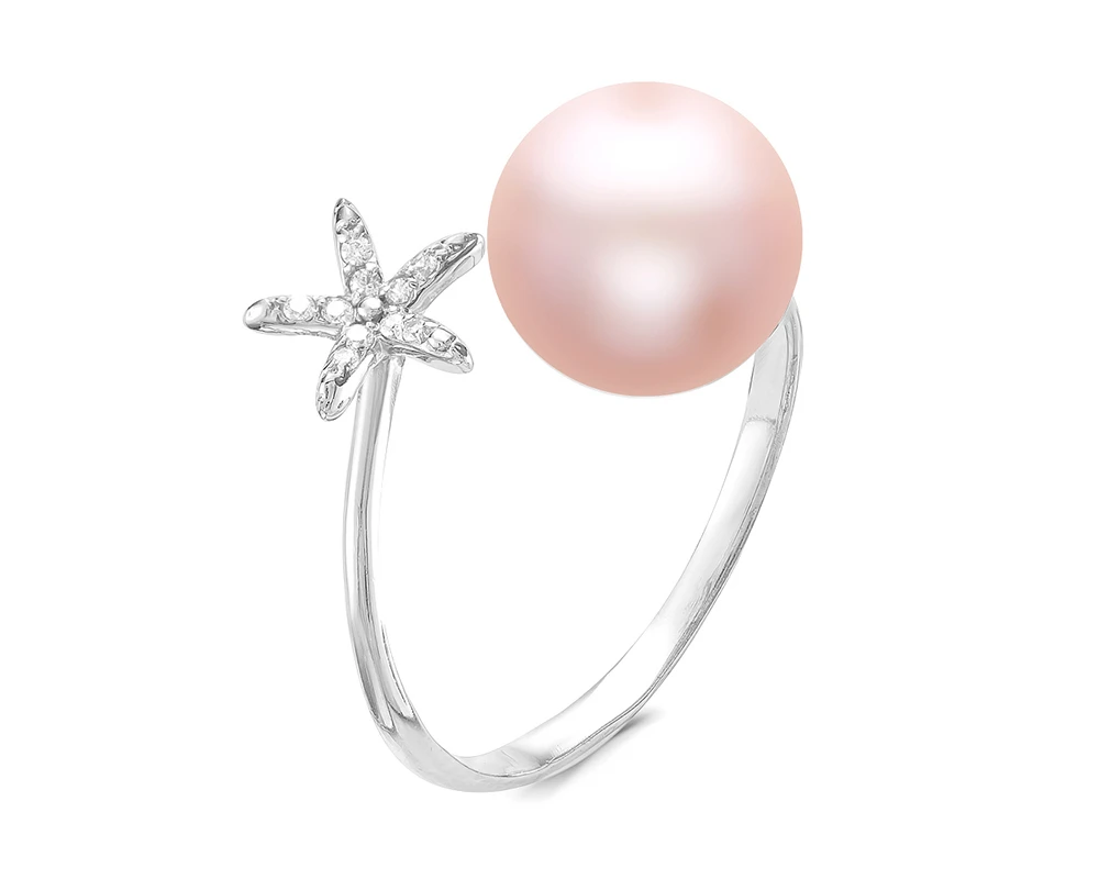 Кольцо "Диор" из серебра с розовой речной жемчужиной 7,5-8 мм, (6027)