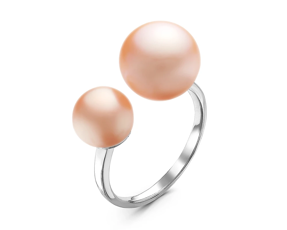 Кольцо "Диор" из серебра с розовыми речными жемчужинами 7,5-11 мм, (6289)