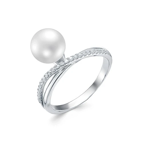 Кольцо из серебра с белой речной жемчужиной 8,5-9 мм, (631)
