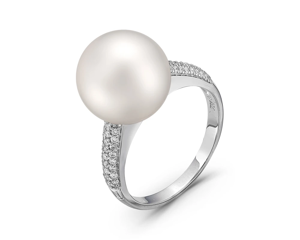 Кольцо выполнено из серебра 925 пробы, украшено белой пресноводной жемчужиной. Качество жемчужины высокое, блеск очень яркий, форма идеальная круглая, дефектов на поверхности нет. Производство — Россия.