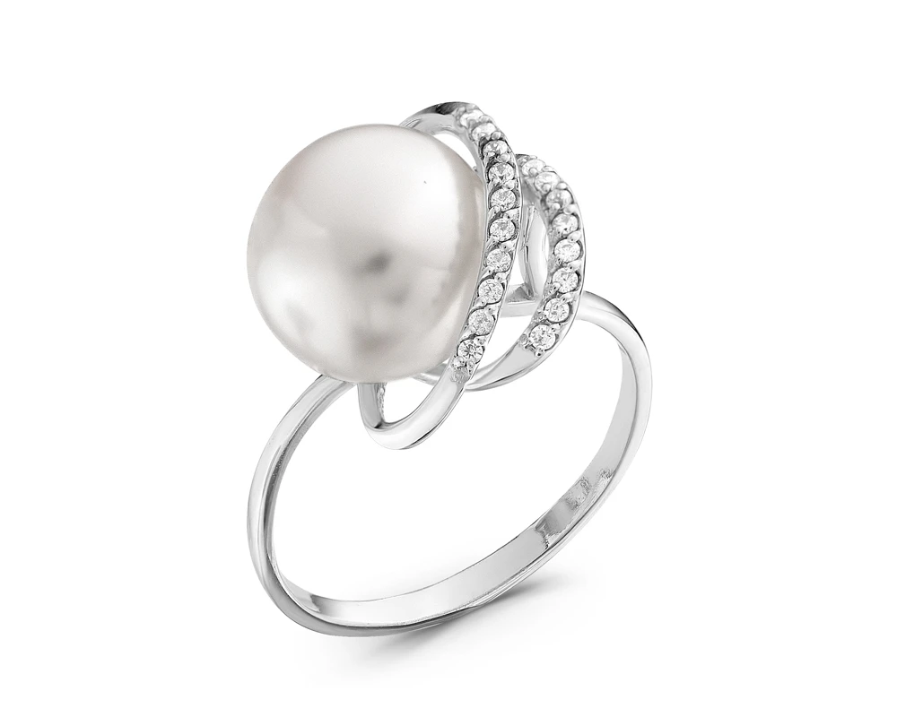 Кольцо из серебра с белой речной жемчужиной 10,5-11 мм, (3085)