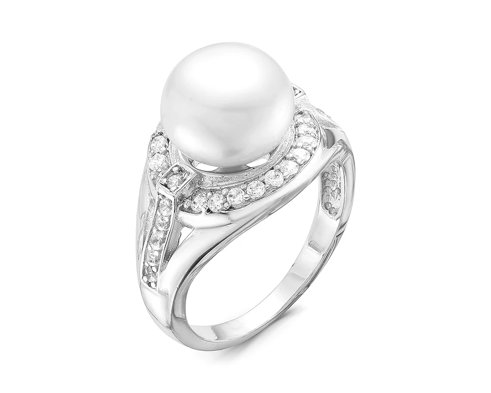 Кольцо из серебра с белой речной жемчужиной 10,5 мм, (3950)