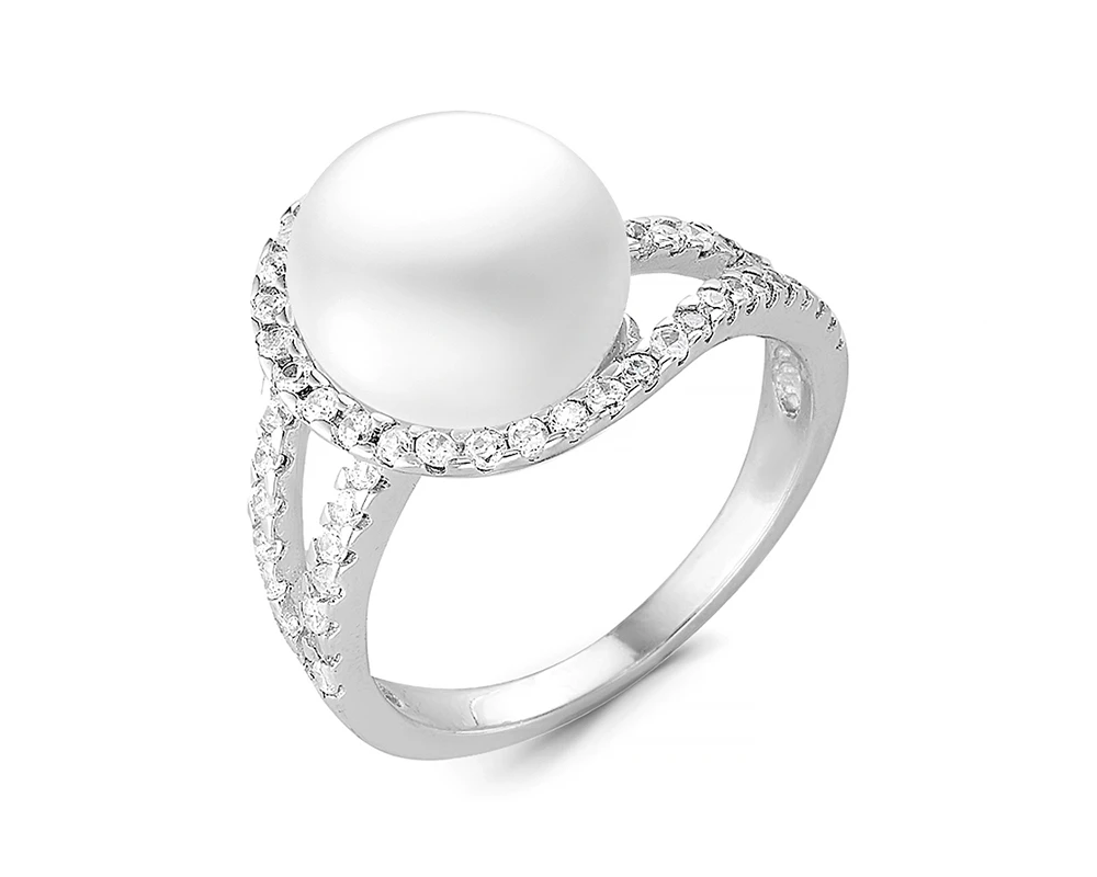 Кольцо из серебра с белой речной жемчужиной 10 мм, (2367)