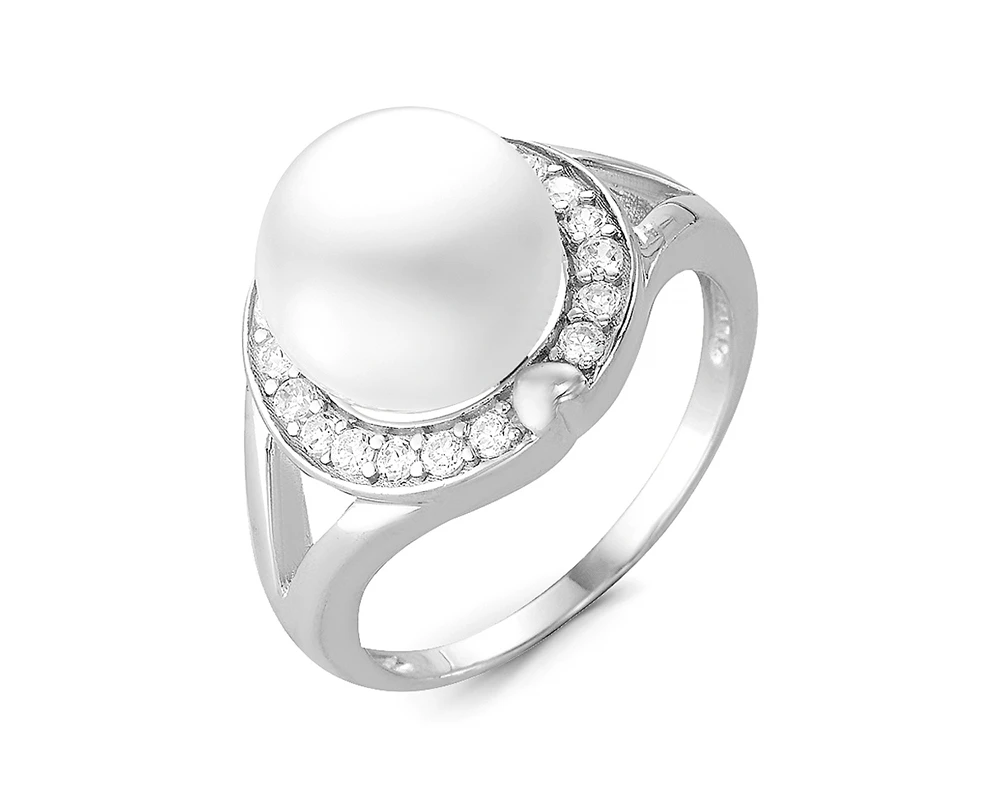 Кольцо из серебра с белой речной жемчужиной 10 мм, (2376)